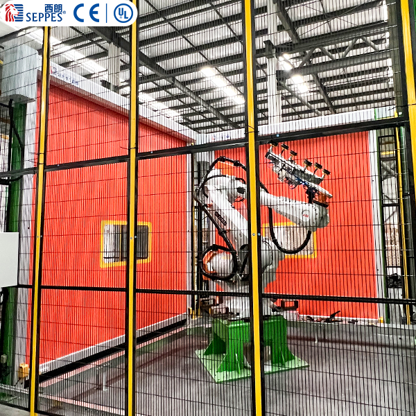 专为工业机器人工作站设计的安全防护快速门,采用高强度PVC门帘与铝合金框架,配备红外安全光电与无线安全底边,实现毫秒级响应,遇阻即时回弹,全方位保障人员安全。开门速度可达1.0-1.5m/s,满足机器人高效作业节拍,减少等待时间。支持与安全围栏、光栅、PLC系统联锁,形成完整的安全防护体系。门体具备防尘、隔离焊渣火花功能,可选配透明视窗便于观察。适用于焊接、搬运、码垛等机器人自动化产线,符合ISO 9001安全标准,助力企业实现智能化安全生产。
